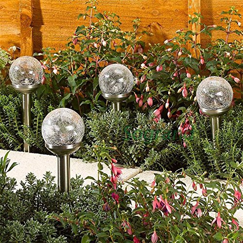 Jimeng 2PCSセット ステンレス&ガラス ソーラーライト ソーラーガーデンライト ヒビ加工 LEDライト ガーデンライト ウォームホワイト
