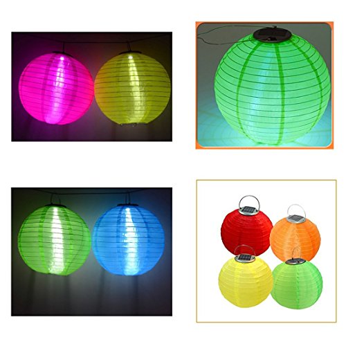 Jimeng 直径30CM 防水 ソーラー発電 提灯 ランタン イルミネーション 太陽光パネル搭載 和風 折り畳み式 4個セット