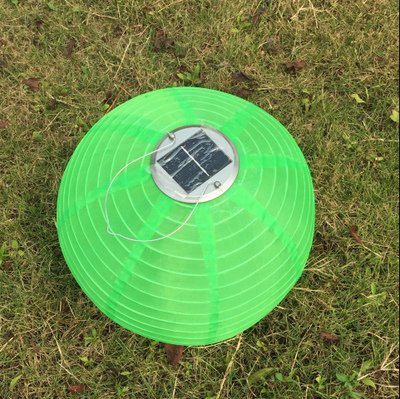 Jimeng 直径30CM 防水 ソーラー発電 提灯 ランタン イルミネーション 太陽光パネル搭載 和風 折り畳み式 グリーン
