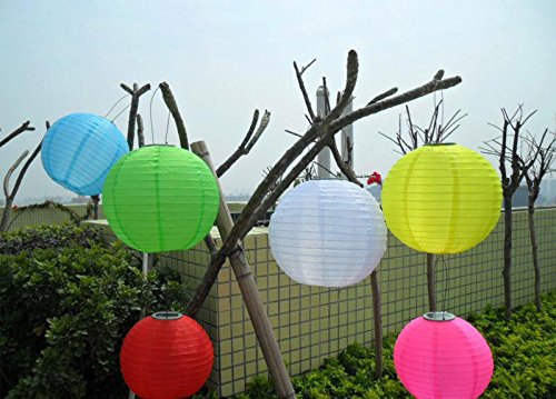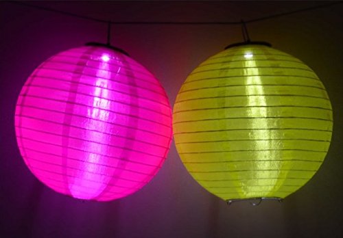 Jimeng 直径30CM 防水 ソーラー発電 提灯 ランタン イルミネーション 太陽光パネル搭載 和風 折り畳み式 イエロー