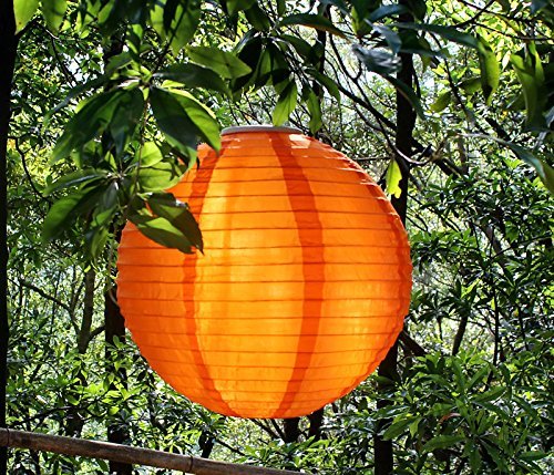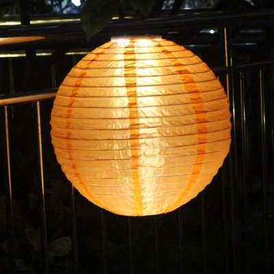 Jimeng 直径30CM 防水 ソーラー発電 提灯 ランタン イルミネーション 太陽光パネル搭載 和風 折り畳み式 オレンジ