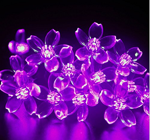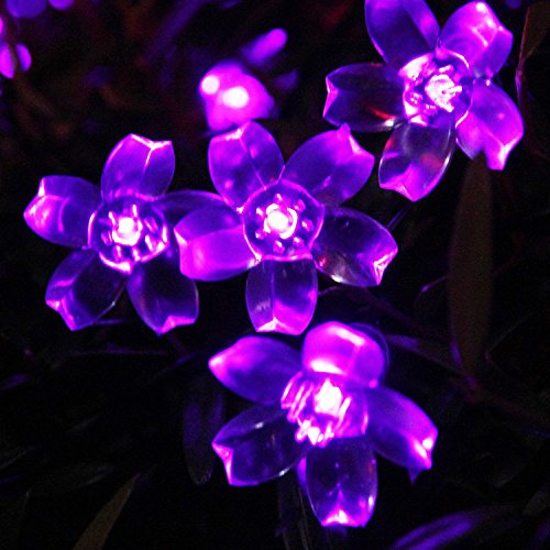 Jimeng 桃花 LEDストリングライト イルミネーションLEDライト ソーラーパネル ソーラー充電式 全長7m LED50灯 パープル