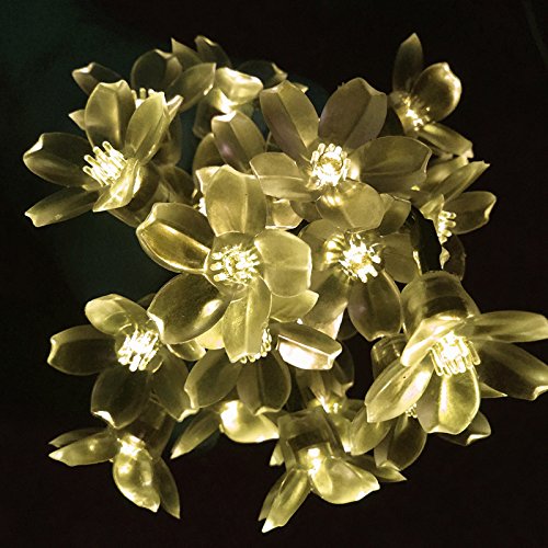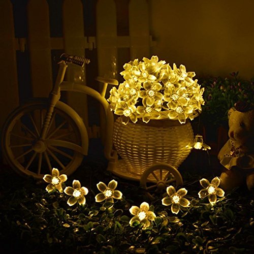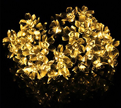 Jimeng 桃花 LEDストリングライト イルミネーションLEDライト ソーラーパネル ソーラー充電式 全長7m LED50灯 ウォームホワイト
