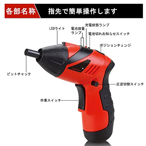 - 【正逆転】指先で簡単操作できる電動ドライバー!ネジを締めたり、緩めたりする回転方向を指先で切り替えることができます!左右対称の形状なので、右利き・左利きのどちらの方でも使えます。