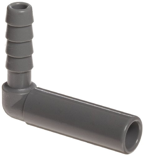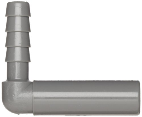 90-degree elbow for connecting two pipes or fittings at an angle;Stem fitting inserts into tubing to connect pipes or tubes with different ends;Made of acetal copolymer plastic for low moisture absorption and high tensile and flexural strength;Working pressure of up to 150 psi;Meets NSF/ANSI standards 14, 51, and 61 for quality assurance