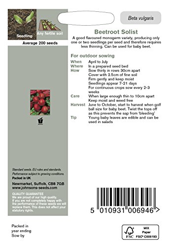 素晴らしいフレイバーでベビー・ベジタブルとしても利用できます。『monogerm・モノジャーム』なので一つの種子から1~2苗しかできず間引く手間がかかりません。ダイエットに効果のある繊維質が豊富です!葉酸やマンガンも豊富に含んでいます。 ◆学名、科名 Beta vulgaris サトウダイコン ◆味わい方 ボルシチ サラダ、酢漬け、ボイル等 ◆播種時期 3~7月 ◆収穫時期 6~9月 ◆発芽適温 13~29℃ ◆発芽までの日数 7~21日 ◆播種深さ 約2.5cm ◆採種国 イギリス ◆容量 約200粒 ◆英国の実験室内での発芽率試験結果 約85% おおよその目安です。発芽率を保証するものでは有りません。 ◆植え方 株間:約10cm 畝間:約30cm ◆育て方 日当たり、水はけの良い有機質に富んだ肥沃な土を好みます。 プラグトレイ&シードトレイに播き、摘めるようになったら9cmポットに仮植し、根が十分に回わり本葉5~6枚になったら用土を崩さずに慎重に定植します。 湿度を保ち、雑草(中耕する。)を除く。長期収穫するには2、3週間おきに播種します。