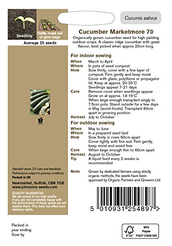 JOOG Johnsons Seeds ORGANIC Cucumber MARKETMORE 70 キューカンバー(きゅうり)・マーケットモア 70 ジョンソンズシード