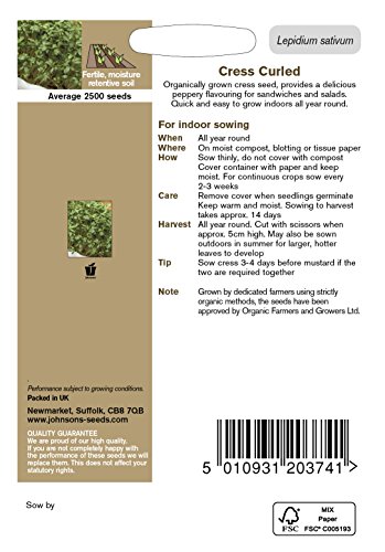 【輸入種子】 Johnsons Seeds Organic Cress Curled クレス・カールド・オーガニック ジョンソンズシード