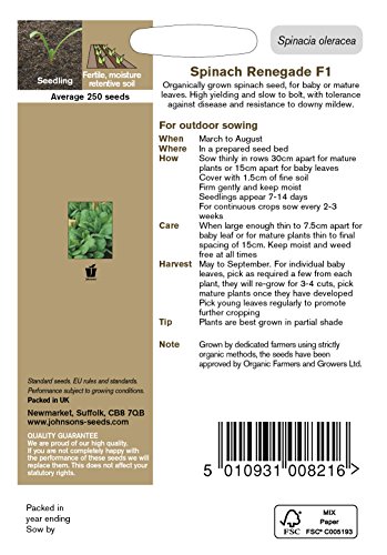 JOOG 英国ジョンソンズシード Johnsons Seeds ORGANIC Spinach Renegade F1 オーガニック スピナッチ(ほうれんそう)・レネゲイド・F1