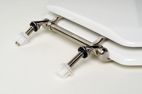 Jones Stephen C1B4E2-00BN Deluxe Molded Elongated Wood Toilet Seat with Brushed Nickel Hinges- White