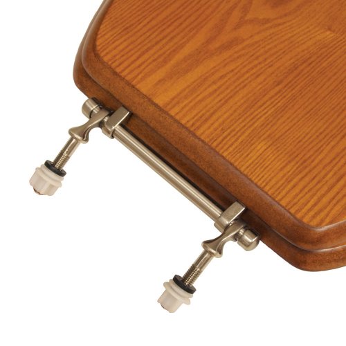 Hand-Selected premium grade oak wood laminated to MDF for beauty and durability. Factory installed hinges ensure perfect alignment between the cover and seat. Simple to install, corrosion proof, self-aligning hardware. Traditional Design Bar Hinge with finish coordinated screws. Multi-coat surface finish provides a beautiful, long-lasting and durable finish. Clean with Warm Soapy Water. Color coordinated bumpers. plated hinges for corrosion resistance. . .