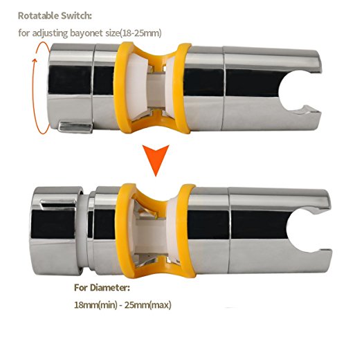 Joyoldelf シャワーフック スライド 汎用 シャワーホルダー 可変式 はめ込み型 交換 修理用 18-25mm対応 クロームメッキ (イエロー)