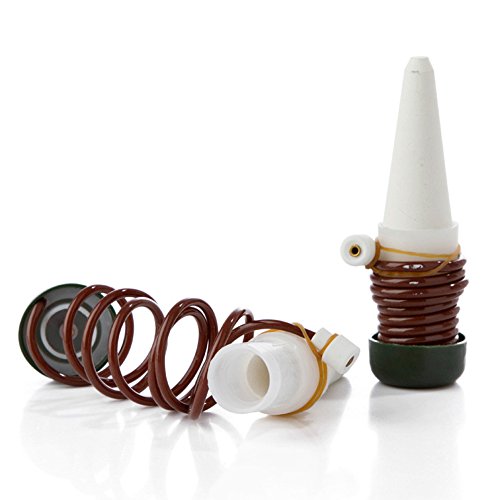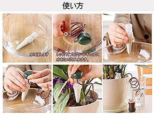 - 。♥。使い易い--緑のキャップを外して、水に15分ぐらい浸します(白い先端の部分は完全に浸す)。そしてパイプとキャップに水を入れて、満ちてからキャップを元にきっちり装着して、パイプの一端を水のある容器に置いて、白い主体の部分は土に差し込めばいい。