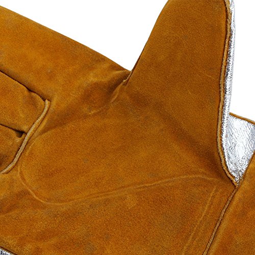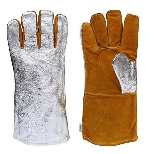 . 14" Aluminized back welding gloves feature a cowhide palm with reinforced thumb and ACK back designed to reflect heat and spatter up to 1500°F.