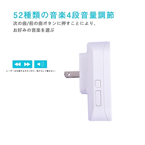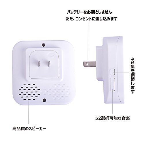 【Julyfox 】ドアベル 玄関 ワイヤレス 防水防塵呼び出しチャイムセット 52曲選択可 300メートルの無線範囲 LEDライトが光る 玄関チャイム (2送信機+1受信機)