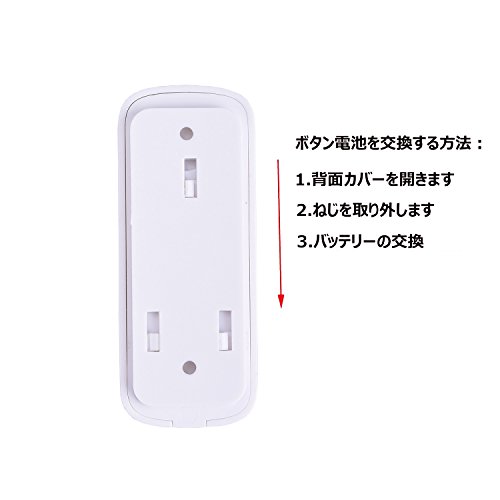 - 数分以内に簡単に設置できます。発信機にボタン電池をセットして、受信機をコンセントに差し込むだけです。