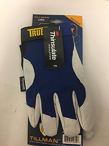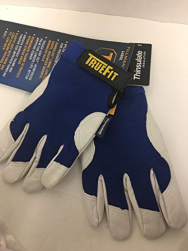 Blue And Gray TrueFitTM Pigskin And Nylon Thinsulate? Lined Cold Weather Gloves With Elastic Cuffs [並行輸入品]