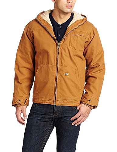 Dickies Men's Sanded Duck Sherpa Lined Hooded Jacket Brown Large [並行輸入品]