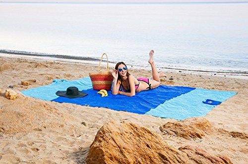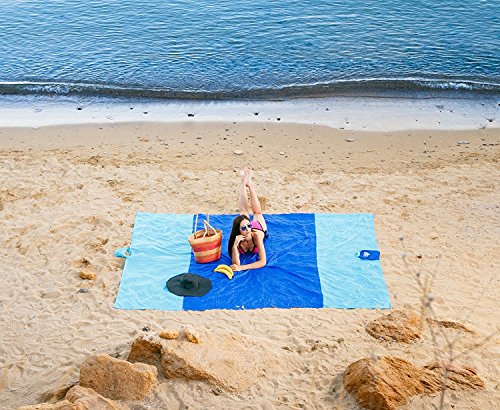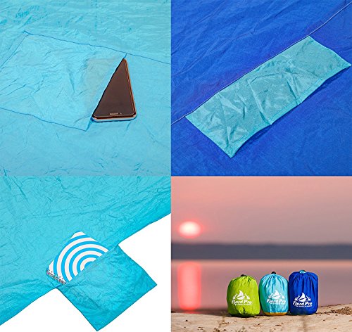 100% Nylon Sand Proof Beach Blanket - Oversized 7' x 9' - Quick Drying Lightweight & Durable Design - 6 Sand Pockets for Securing & 1 For Storage - Ideal as Outdoor & Picnic Blankets Too [並行輸入品]