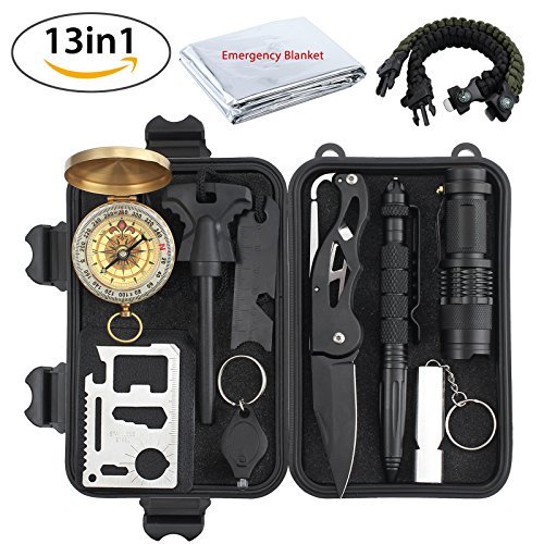 justech緊急サバイバルキット13 in 1、Miniサバイバルギアキットアウトドアサバイバルツールwith Thermal Blanket CarabinerブレスレットFire Starter More for Adventure屋外スポーツ旅行ハイキング