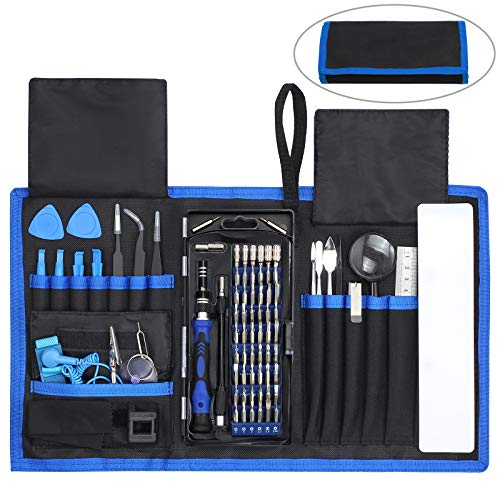 - 【78-in-1磁気ドライバーセット商品】4 ×プラスチック開口ツール、3 X ESDピンセット, 1 xユーティリティナイフ、1 x帯電防止リストストラップ、金属製スパッジャー, 1 xエジェクタピンSIMカードおよびLCDの吸盤2 X三角形のギターピック, 1 xスパッジャー, 3 X 1 Xメタルルーラー、1 x拡大鏡、1 x布、1 xキャリーバッグ