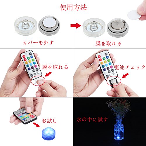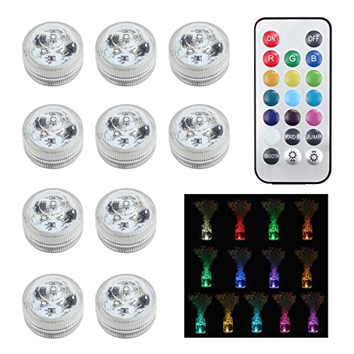 Justech 水中ライト led 水槽 カラーライト 防水 池/浴槽/花瓶/金魚鉢に適用 リモコン付き10個入り マルチカラー