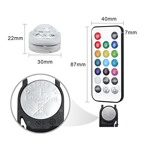 Justech 水中ライトled水槽 潜水ライト 水中ランプ 防水 池/水槽/花瓶/金魚鉢に適用 リモコン付き10個入り マルチカラー