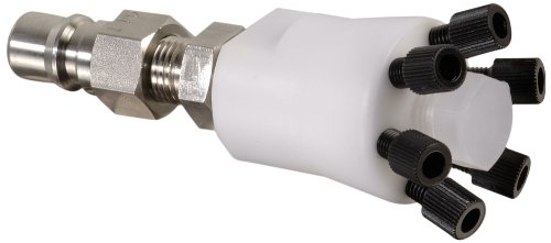 Justrite the HPLC poly manifold enables up to six waste lines (per manifold) from HPLC processes to be fed into a single intake fitting. Multiple manifolds may be used on a custom-designed Quick Disconnect container as long as one disconnect remains unused to permit venting and prevent back pressure.