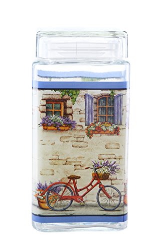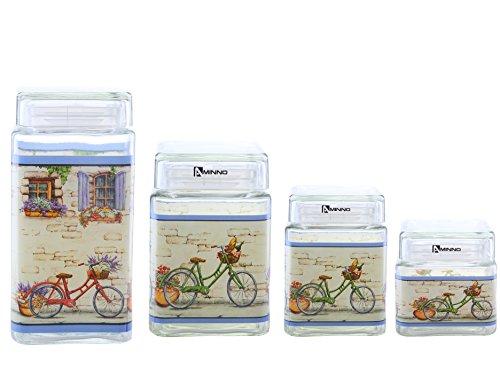 正方形ガラスフードコンテナSmall Medium Large Classic French村テーマコンテナDry FoodキャンディCereal Pasta with Suction Sealed Top – 4 Piece Set