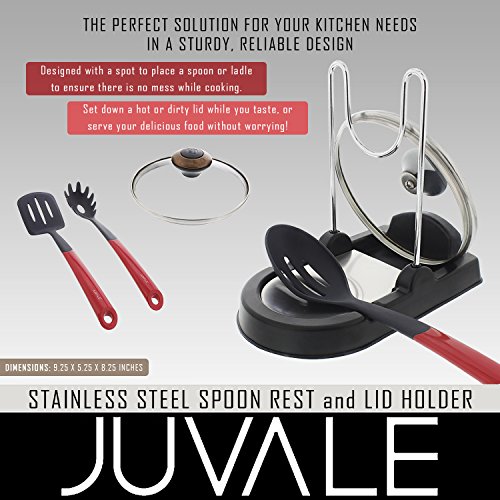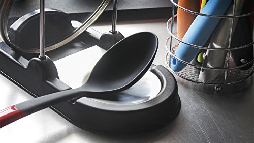 Spoon Rest &蓋ホルダー – ステンレススチール – キッチンのStovetop &カウンタートップ – Holds最も蓋、スプーン、& Cooking Utensilサイズ-シルバー/ブラック、9.25 X 5.25 X 8.25インチ
