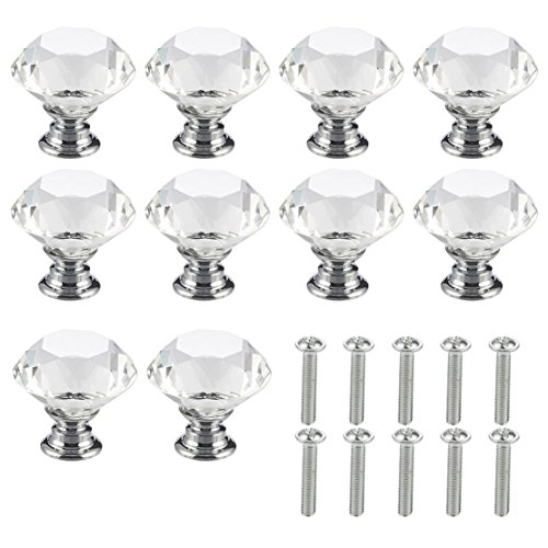 クリスタルガラスのノブ – 10ピースクリアダイヤモンド図形のプルハンドル引き出し、キャビネット、ドレッサーのキッチン、ベッドルーム、リビングルーム、30 mm