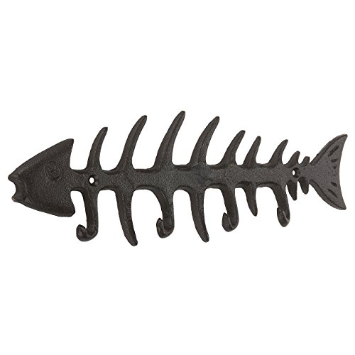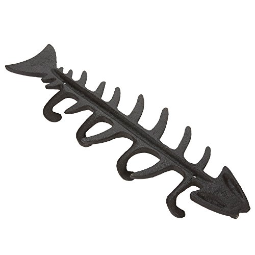 錬鉄フックレール フック4個付き 魚の骨型 インテリア 室内/屋外用 衣類 ガーデニング道具 DIY機器など家庭用品に 7.67x11インチ