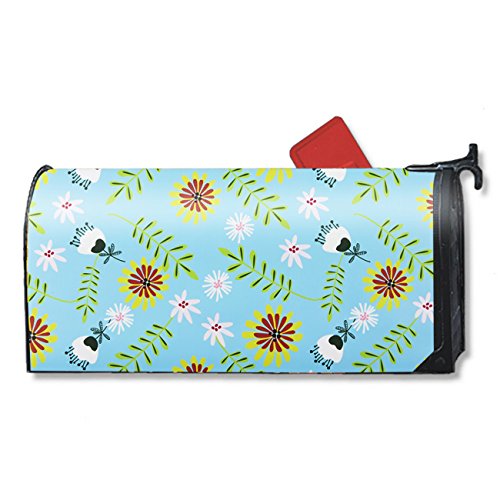 - 、あなたのメールボックスに変身、スプリング:ようこそ自宅に飾られているこの装飾されたメールボックスカバー特徴はブルーの背景の上にホワイトとイエローの花柄