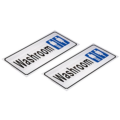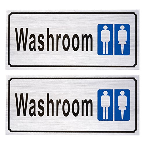 化粧室Signs – 2ピースユニセックス公衆トイレのサイン、理想的なレストラン、カフェ、バー、アルミバスルームサインステッカーメンズレディース、シルバー、8.6 X 3.5 CM