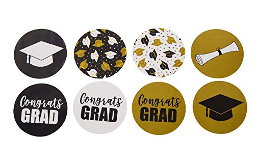 これらの卒業ステッカーを貼ってパーティの記念品、テーブルカバーや招待に追加カラーと楽しいメッセージング。ステッカーのロールで000項目を含む8異なる設計が可能になります。これらの卒業の贈り物にはカラーゴールド、ブラック、シルバー、ホワイトのように、ているため、簡単にほぼすべての卒業のお祝いへの統合。各2018パーティーステッカーは1.5インチ、十分に確保できているための動作の印象と小型で、工芸品の様々に収まります。