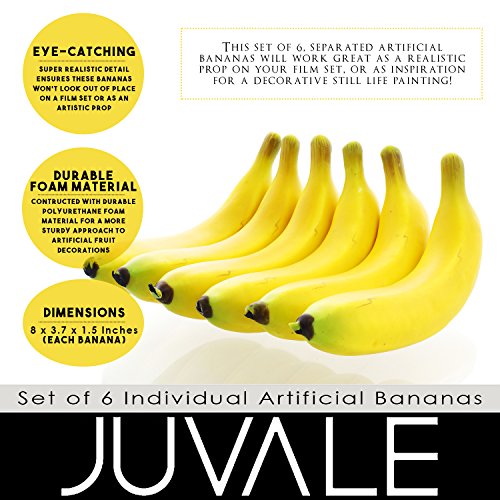 Looking for an almost-real, artificial fruit that makes you double-take.These imitation bananas would look great as storefront decoration, kitchen decoration or artistic prop! Super realistic detail ensures these bananas won't look out of place on a film set or as an artistic prop.These artificial bananas have been constructed using a durable Polyurethane foam material for a sturdier approach to artificial fruit decorations Dimensions: 8 x 3.7 x 1.5