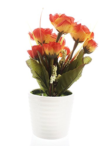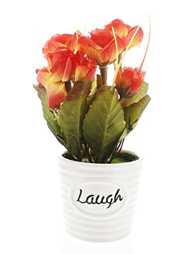 人工バラ花 – Fake Roses withセラミックポットウェディングデコレーション、パーティーデコレーション、キッチン用デコレーション – 7.5 X 2.5インチ