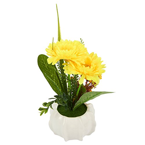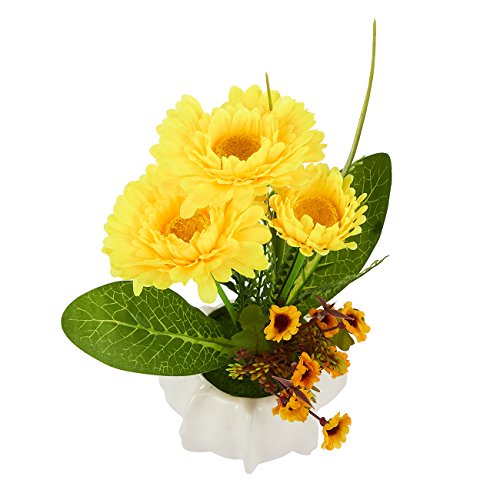 人工ひまわりフラワー – Fakeひまわりwithセラミックポットウェディングデコレーション、パーティーデコレーション、キッチン用デコレーション – 9.5 X 4.75インチ