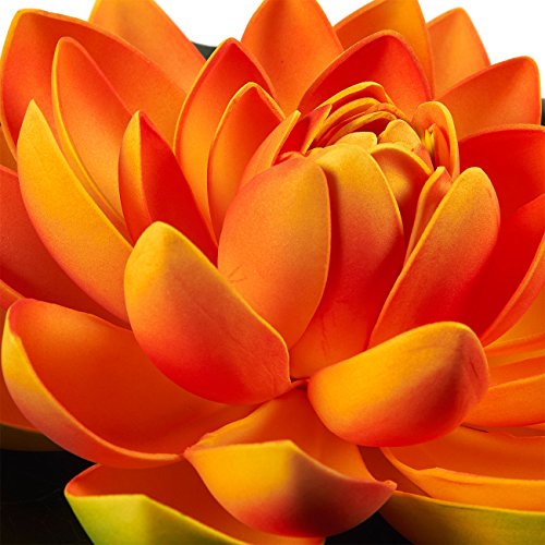 場合をお探しのお客様、庭園の池自分自身をこの方法でへの多い自然の装飾の一部追加された簡単に代わる、人工成長している本物の植物juvaleの一連の4つの人工フローティング花蓮のグリーンの葉は4魅力で色はオレンジ、パープル、ピンク、アイボリー。結婚式などの装飾のホーム庭園であり、水の機能が含まれていますが、と特別なイベントやパーティーのために最適です。