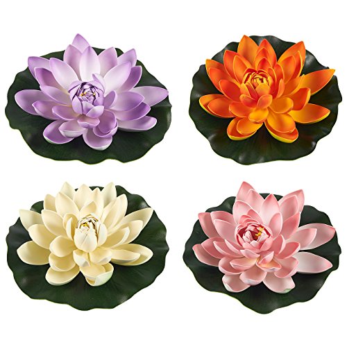 フローティング花 – セットof 4人工水Lilies、フローティングロータス池装飾、11.5 X 2.1インチ