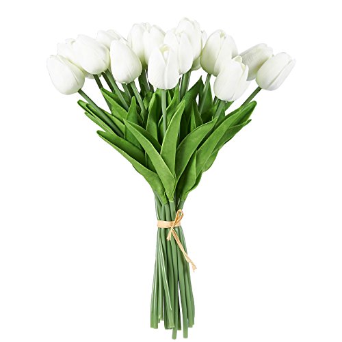 - 造花装飾: real-lookingフラワーブーケが特長のホワイトのチューリップが求められるブライズメイド、シンプル・ブライダルブーケやエレガントな家の花瓶です。