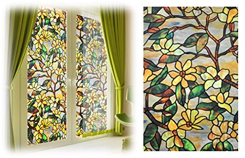 (K-JOY) ステンドグラス風 窓ガラスフィルム ガラスシート /窓目隠し 窓ステッカー (取説付) F290 (45cm×2M, マグノリア)