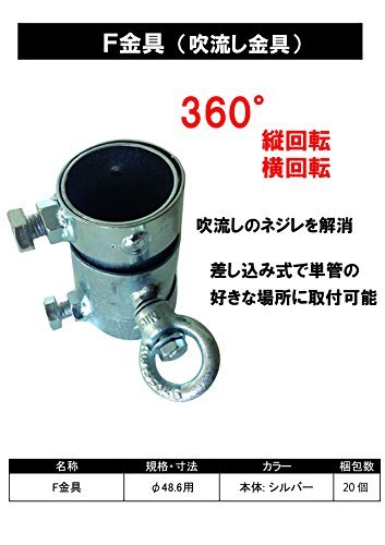 工事現場における吹き流し用金具です。48.6φ単管用。2つの軸が回転し、吹き流しの絡まりを防ぎます。