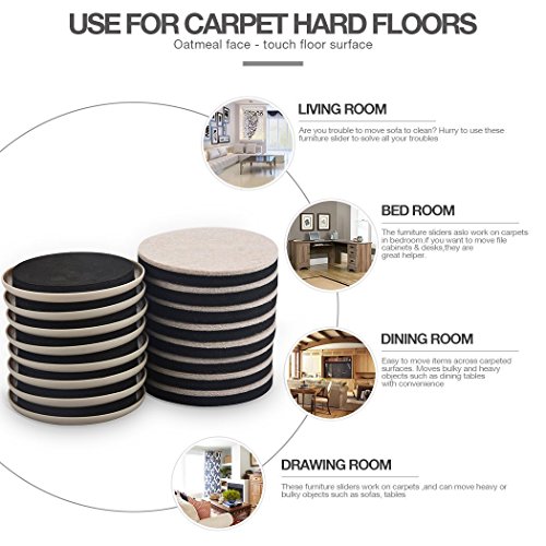 - 2種類のスライダーには家具のためのアイデアに従って、ご自由に使用してください。堅木床用、フロアを移動、スライドのフェルトパッドが触れて上向きでEVAフォーム、フェルトパッドに使用して。MOVEのカーペットをご使用の床、触れて上向きでEVAフォーム、プラスチック面プラスチックスライダーを使用。