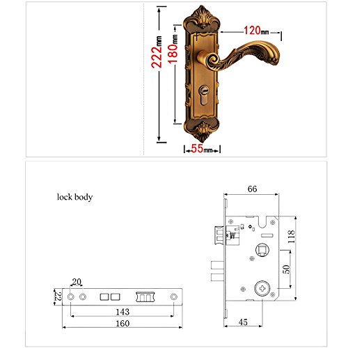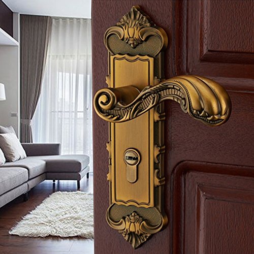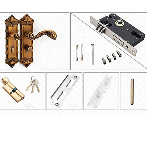ベッドルーム内部ドアハンドルフルイエローブロンズコンチネンタルアンティークドアロックロックセット+キー