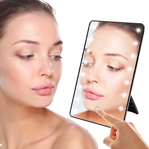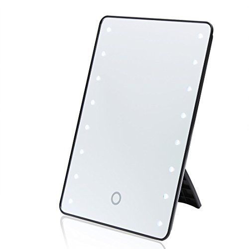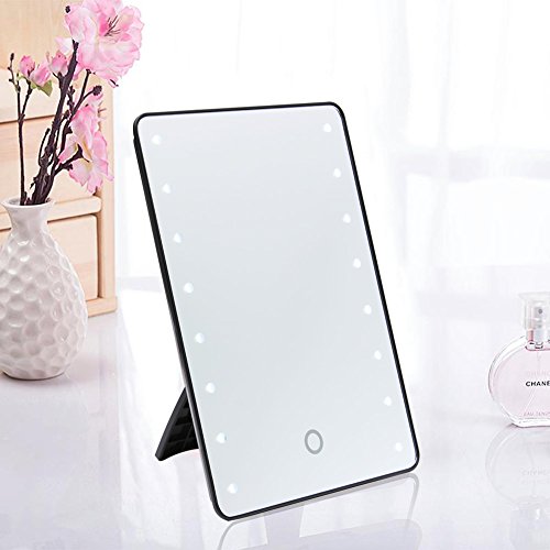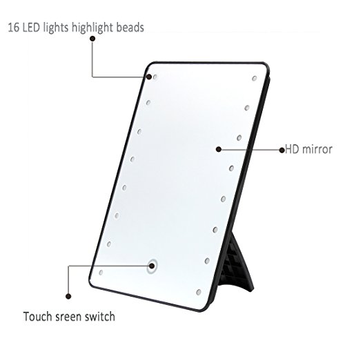 (Black) - 16 LED Lighted Vanity Mirror, TFCFL Portable Touch Screen LED Makeup Mirror with Lights Cosmetic Table Mirror Adjustable Brightness (Black)