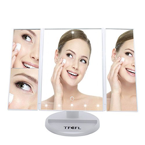(White) - TFCFL 1X/2X/3X Magnifying Vanity Mirror,21 Led Light Makeup Mirror,Tabletop adjustable Lighted Cosmetic Mirrors Tri-Fold Lighted With Three Way Led Touch Screen