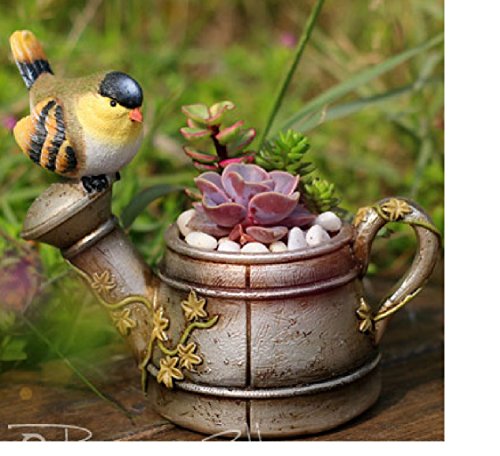 - アンティーク風のじょうろに可愛い小鳥が止まった小さなプランターです。