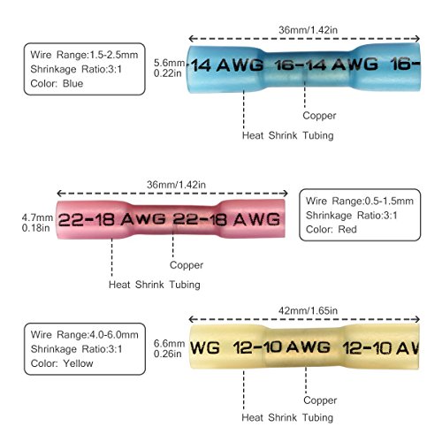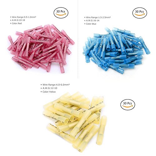 90個熱収縮バットワイヤコネクタ、電気端子クリンプ端子、防水自動車Marineワイヤコネクタシールキット、22 – 14 ga、12 – 10 ga、16 – 14 ga