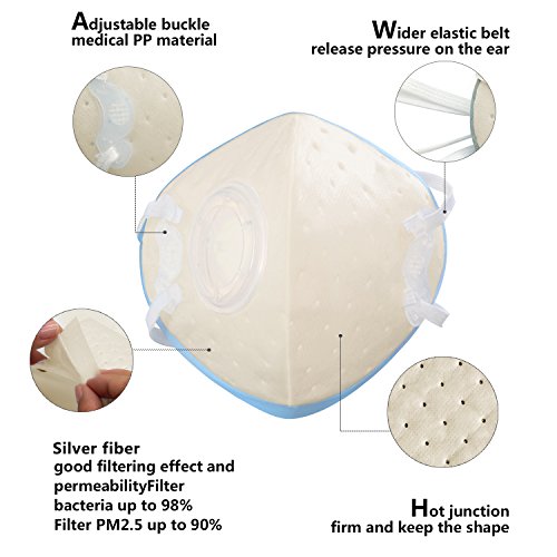 - 濾過性能:6層の濾過構造、ポリプロピレンホットメルトのットンと銀繊維フィルタ材料を採用して、別々サイズの粒子状汚染物質に対応することによって、2.5マイクロ未満の有害粒子を有効的にロックでき、また油性及び塩性粒子状汚染物質を濾し、ドイツのホットメルト技術で固定され、防塵効果が普通マスクより三倍を上回ている